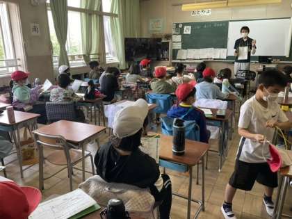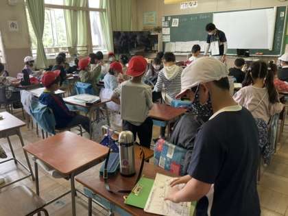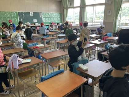 1校時、学区域の探検をします。