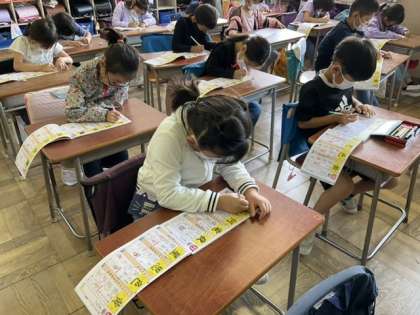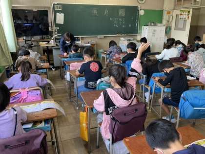 1校時、漢字の学習をしています。
