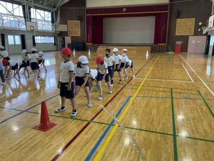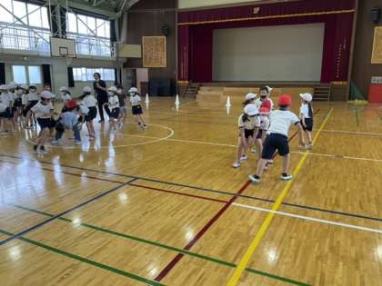 5校時、体育館で運動をしています。