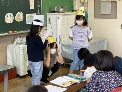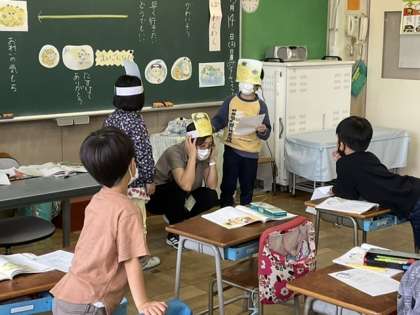 1校時、「かっぱ わんぱく」と言う教材での学習です。