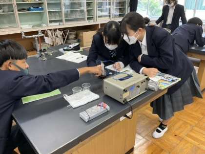 水溶液に電気を流す実験、アサガオやトマトの栽培をしています。
