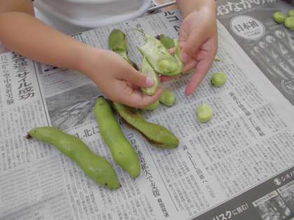 空豆のさやの大きさに驚いたり、スーパーで見たと言う子も