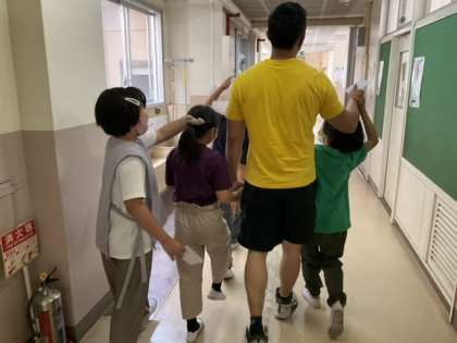 小さな画用紙を持って、校舎内を歩いています。