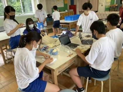 中学部家庭科では、幼児が遊べるおもちゃづくりをしました。