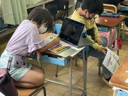 写真を参考に、ワークにまとめています。