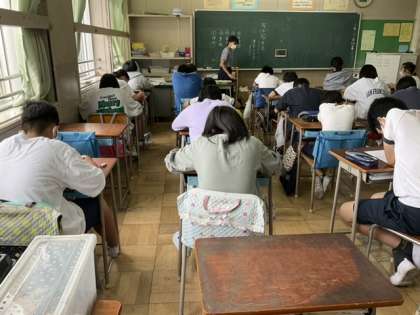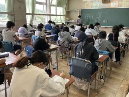 1校時、いじめに関するアンケートに回答しています。