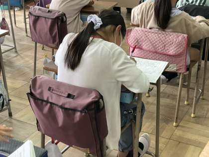 移動教室のしおりを使って、日程を確認しています。
