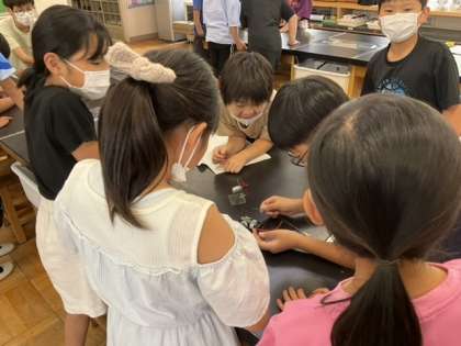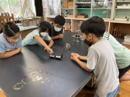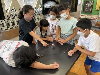 モーターを速く回す回路のつなぎ方を、実験で確かめます。