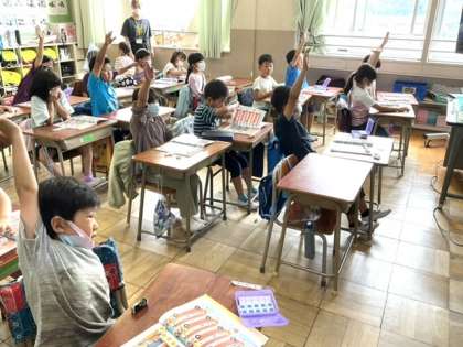 友達が出した問題を、みんなで解いていました。
