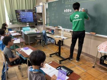 算数タイルで表す活動をしています。