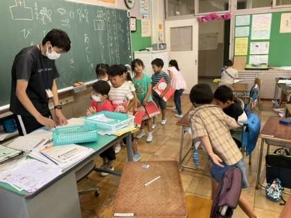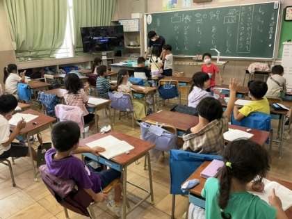 「ゃ、ゅ、ょ」のつく言葉について学習しています。