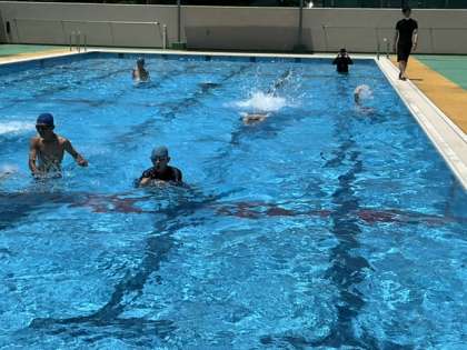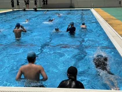 準備体操が終わって、25mを泳ぎ始めました。