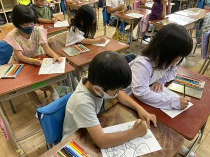 予定していた内容が終わったので、ぬり絵をしています。