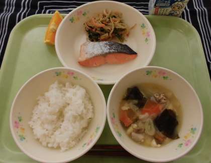 今日の給食では「まごわやさしい」をすべてそろえていますよ!