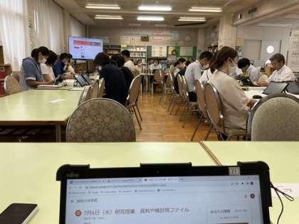 小中合同で研究協議会を開催しています。