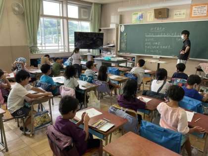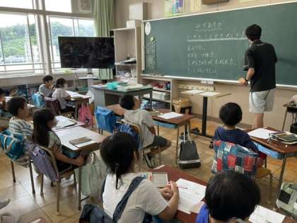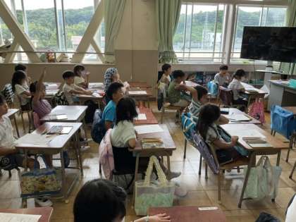 3校時、水泳の振り返りをしています。