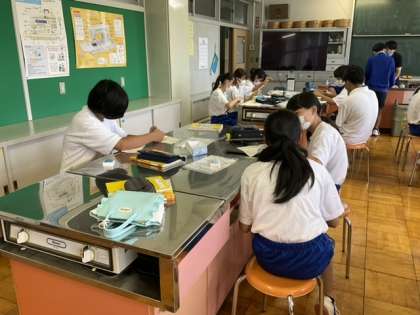 1校時、家庭科です。