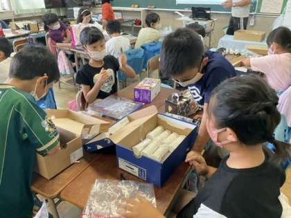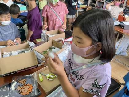 小3の総合的な学習の時間では、カイコの学習をしています。