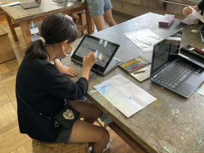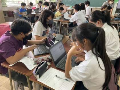 ドリル学習、小中合同授業の話し合い、図工でのアイディア探しに使っています。
