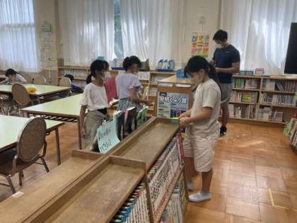 6校時、図書室にいます。