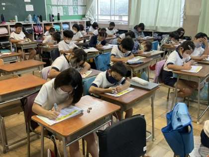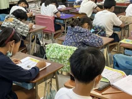 漢字の「問」「部」の練習をしています。