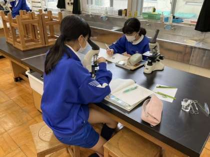 気孔を顕微鏡で観察しています。