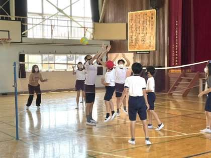 バレーボールの試合をしています。