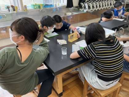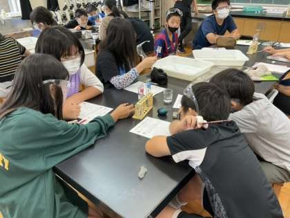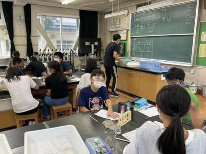スチールウールと塩酸を入れた試験管で、反応が観察できました。