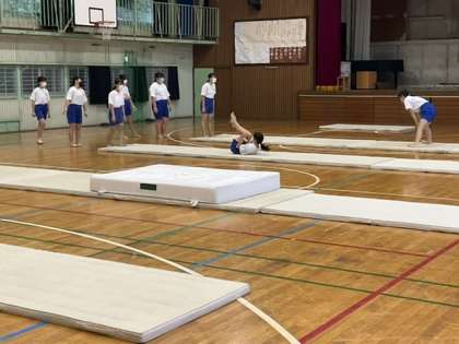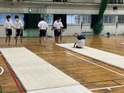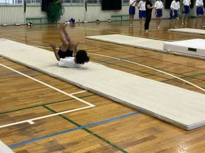 前後転や開脚前転などを練習しています。