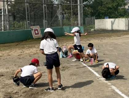 体育では、キックベース、走り幅跳び、マット運動をしています。