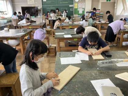 小4の図工では、ノコギリを使って作品を作ります。