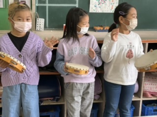 カスタネットとタンバリンを使って、演奏しています。