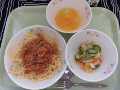 今日は、スパゲティミートソースが大人気でした!!