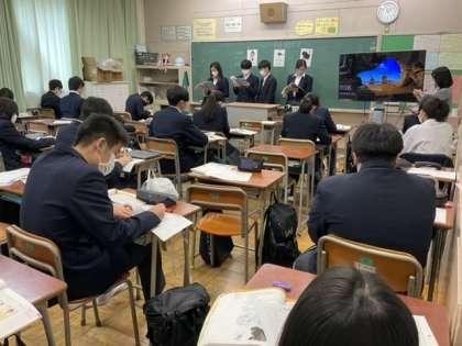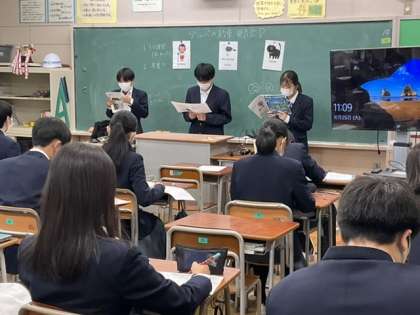 グループでリーディングの発表をしています。