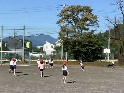 1校時、校庭で体育です。