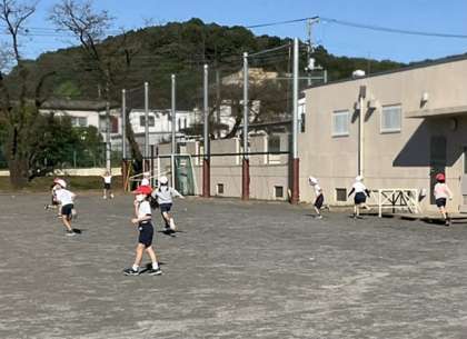 鬼ごっこをして、体を温めていました。