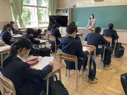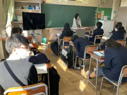 アンケート調査の後、期末考査の予想問題作成の分担をしています。