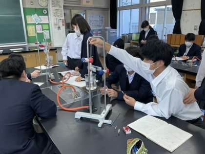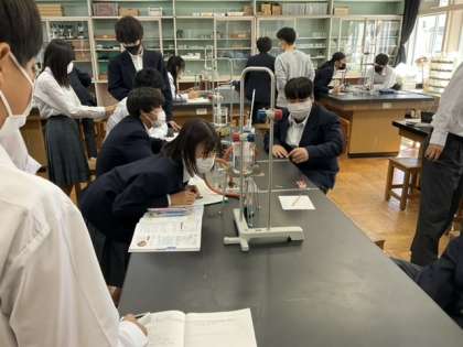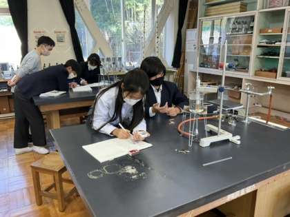 3校時、理科室で実験中です。