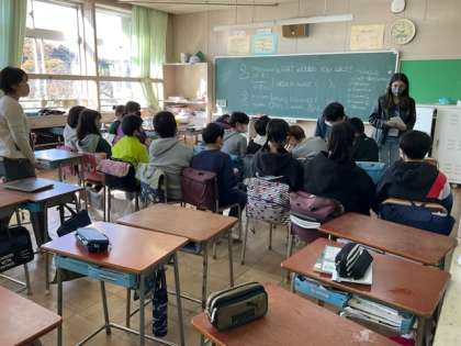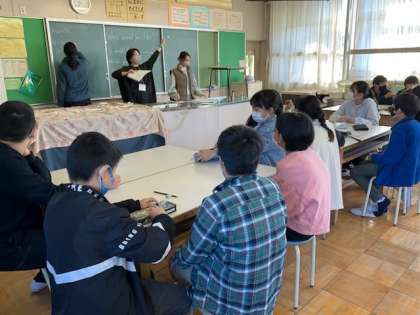 6年生の授業も、近隣大学の学生さんと活動しています。