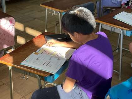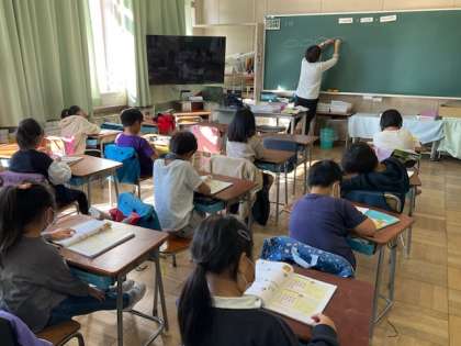 同じ数のまとまりを使って、かけ算で解く学習をします。
