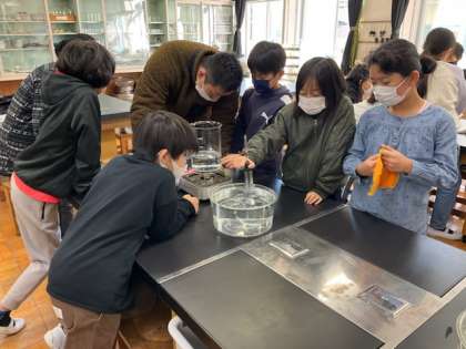 理科では、水の温度と体積の関係や光の性質を調べる実験をしています。
