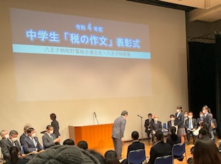 本校の生徒が、「税の作文」で表彰されました。