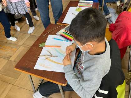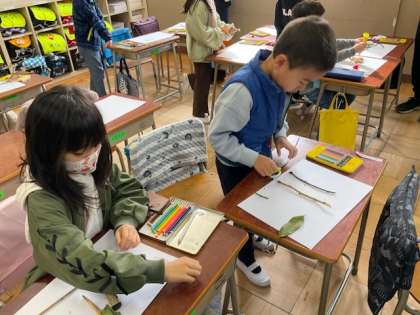 葉や枝、どんぐりなどを使って、秋の不思議な絵を作ります。