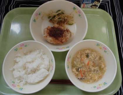 給食では、胸肉の換わりに、やむを得ずもも肉で作って