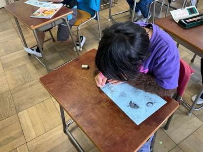 定規を使って直線を引く練習をしています。