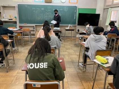 平均に関するプリントの答え合わせをしています。