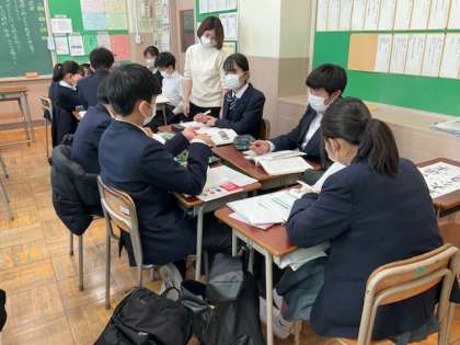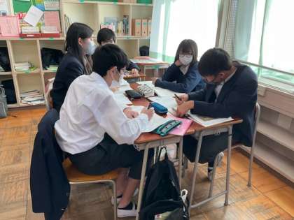 登場人物の設定を、グループで話し合っています。