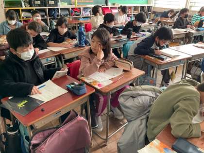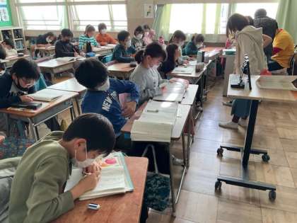 「ウミガメの命をつなぐ」の要約づくりの続きをしています。