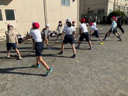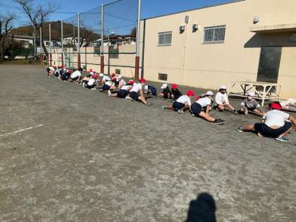 準備体操を一緒にしています。
