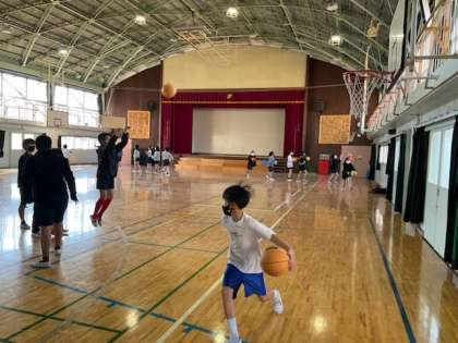 バスケットボールで、シュート練習をしました。